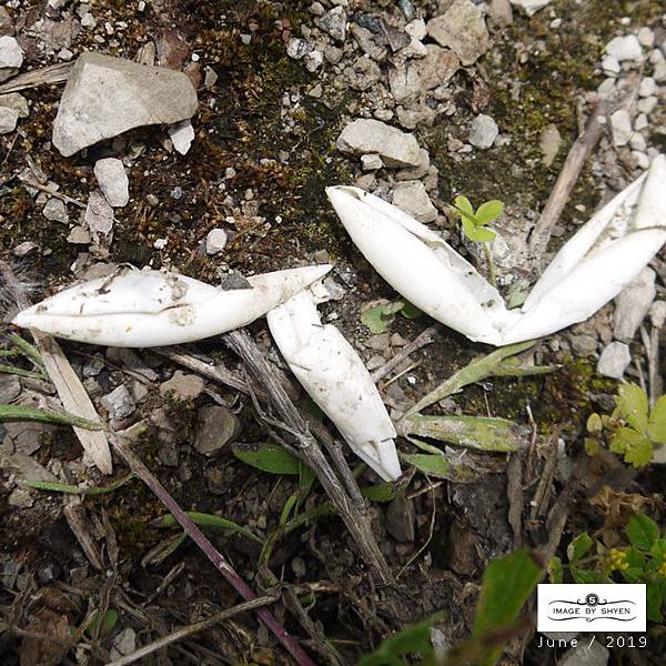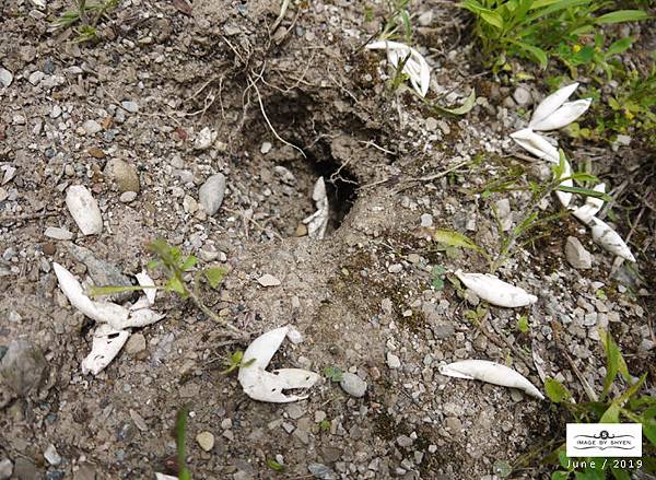小蛇或小烏龜孵化後自行破殼而出而留下的小洞與蛋殼?